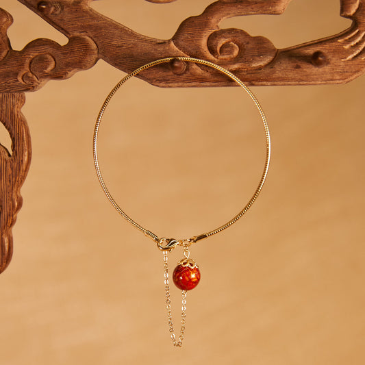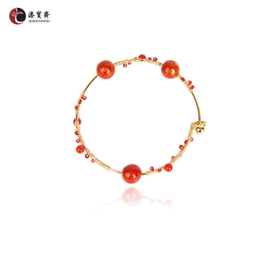 Jewelry/Lacquer bracelet (6.5cm X 1.0cm)/lucky red ball/18K gold plated