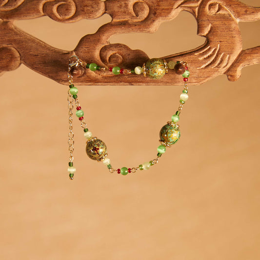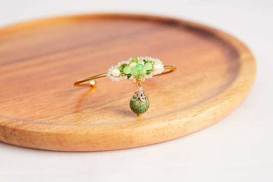 Jewelry/Lacquer bracelet (7cm X 6cm)/Green lacquer ball/Crystal/18K gold plated