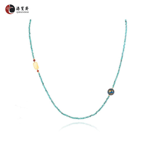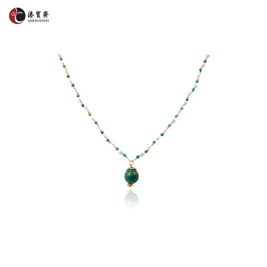 Jewelry/1cm diameter lacquer ball/ Natural turquoise/18K gold plated necklace (23cm - 28.5 cm adjustable)/Blue