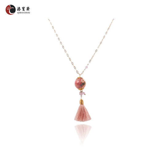 Jewelry/1cm diameter lacquer ball & natural pearls/18K gold plated necklace (42.5cm X 2cm)/Pink