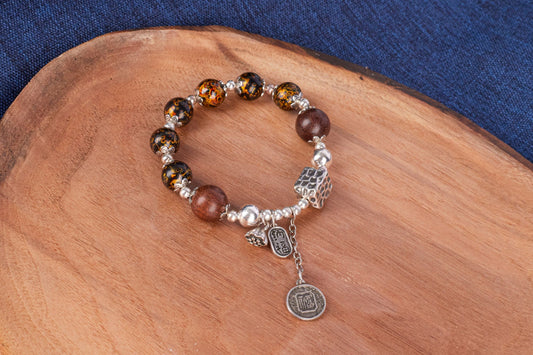 Jewelry/Lacquer bracelet (10cm X 6.5cm)/Black and golden lacquer ball/925 silver/Lotus/Dice/Coin
