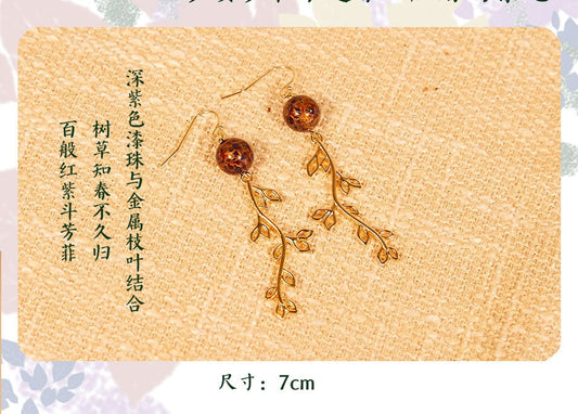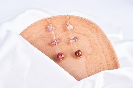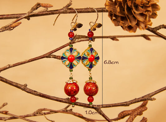 Jewelry/Lacquer earrings (6.8cm X 1.0cm)/lucky red ball flower