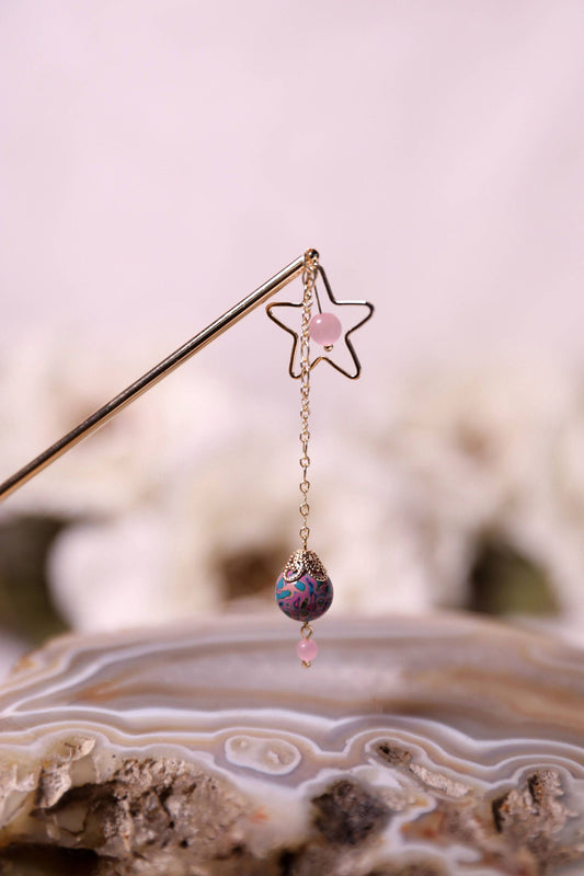 Jewelry/Lacquer hairpin (7cm X 13cm)/cosmos blue ball
